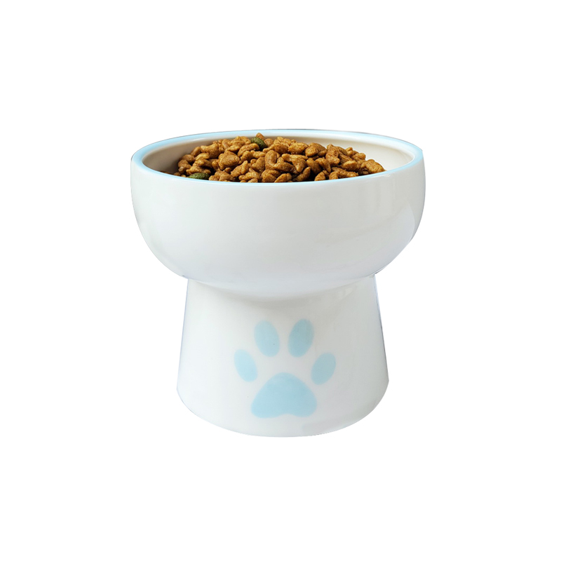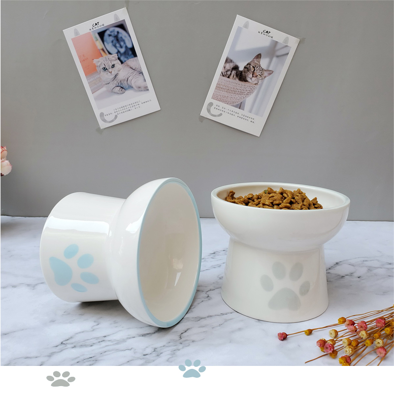 浅口猫碗陶瓷猫咪食盆保护颈椎宠物水碗防打翻高脚猫狗粮碗