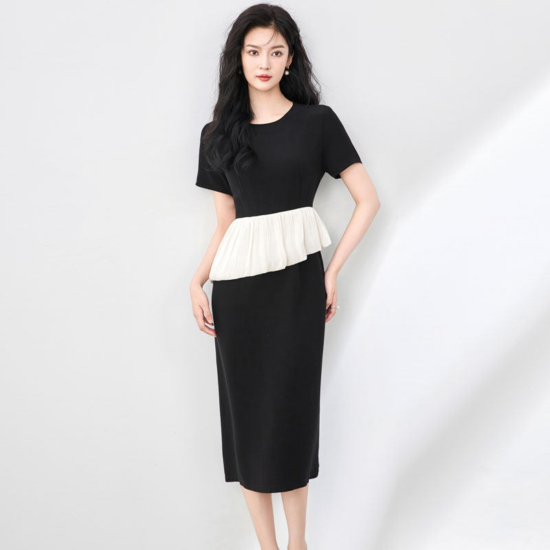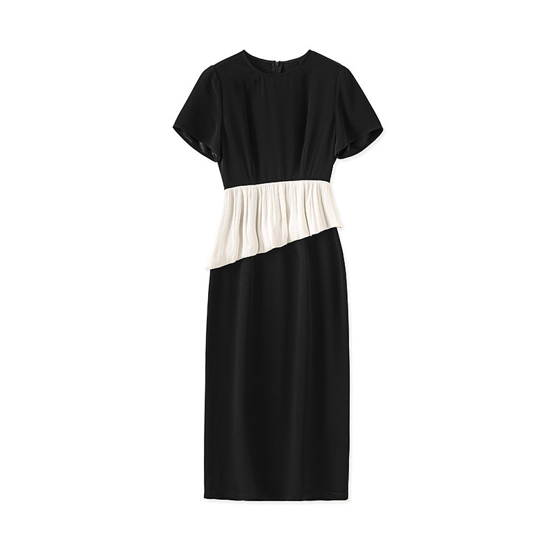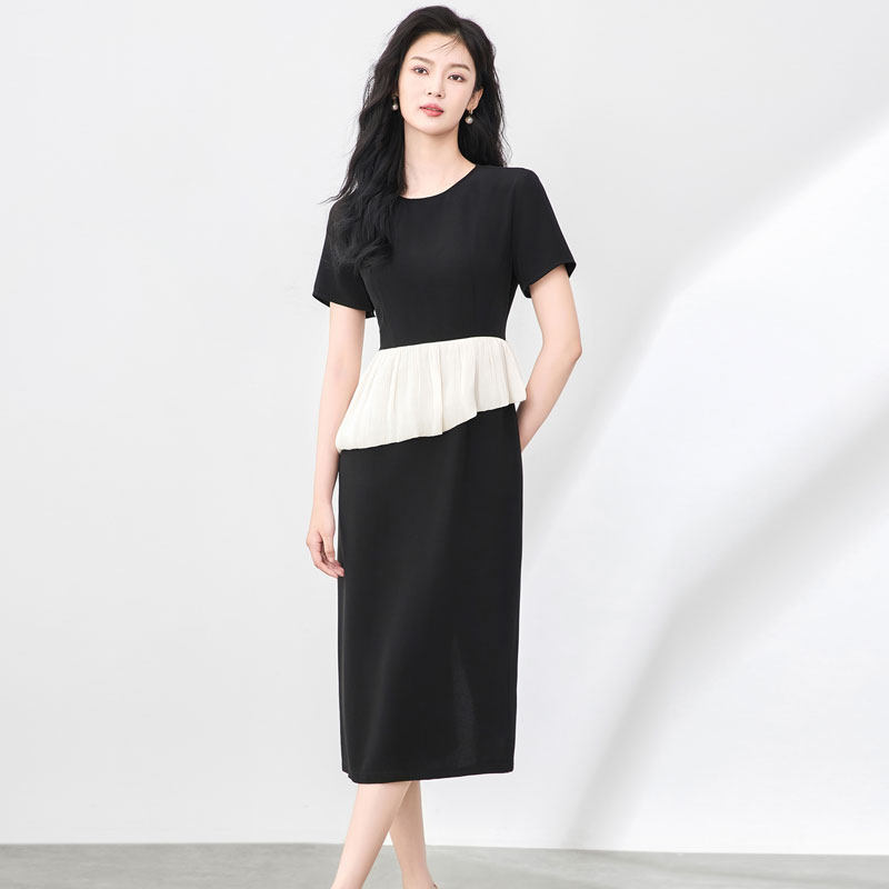 迪奥夏季短袖连衣裙25新款法式轻熟气质醋酸缎高级感礼服中长裙子