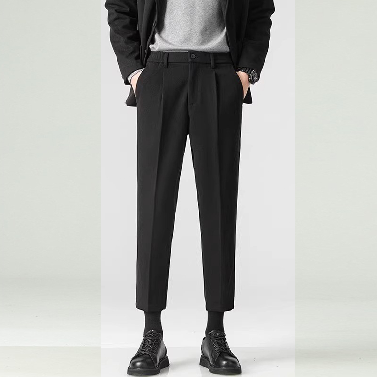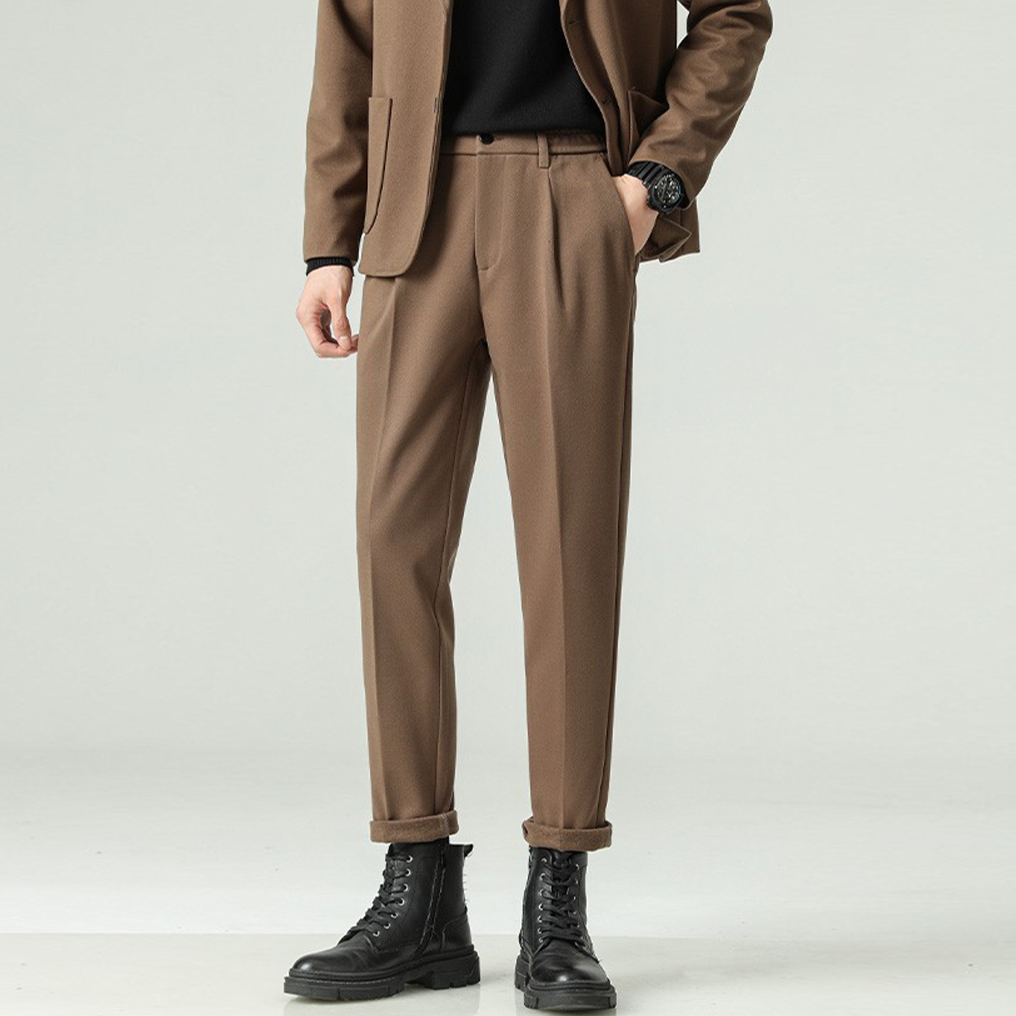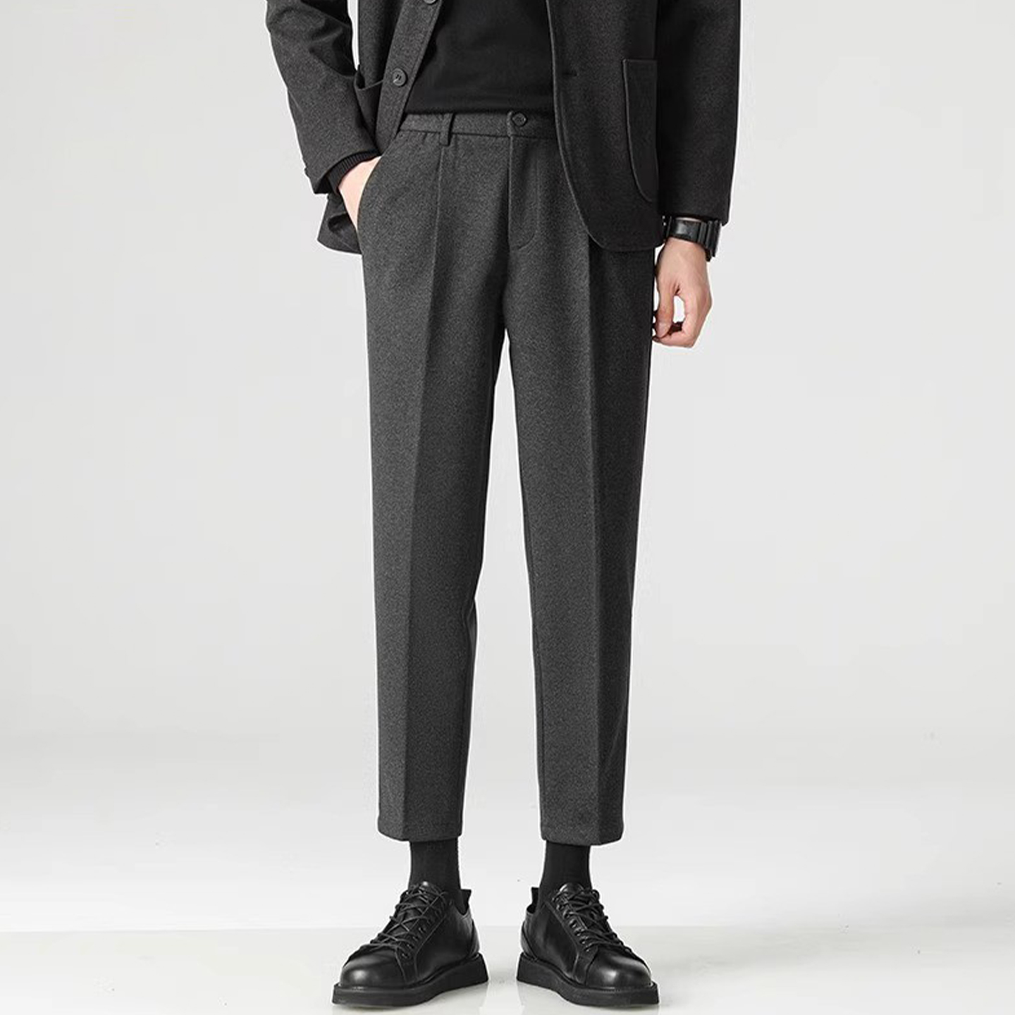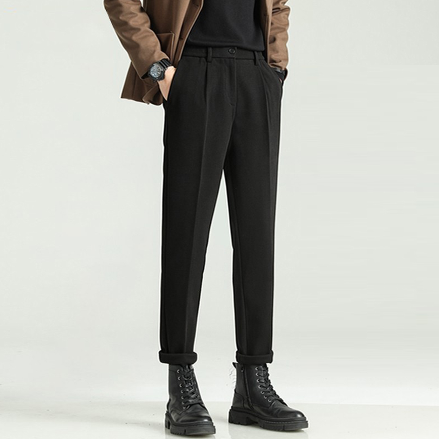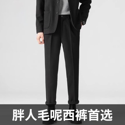秋冬新款毛呢休闲直筒西裤商务轻熟时尚垂感高级宽松西装裤大码男