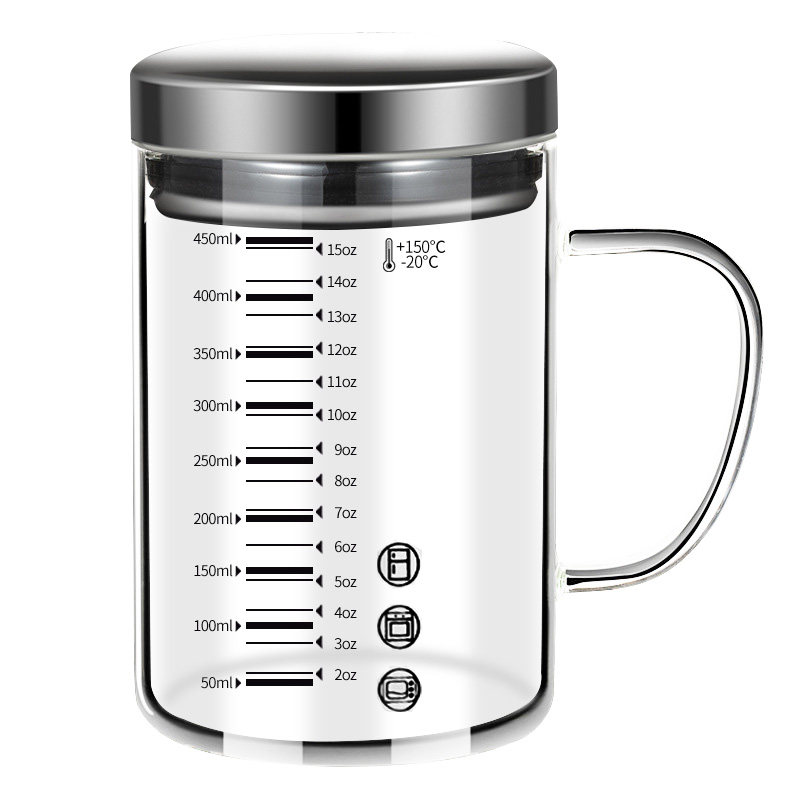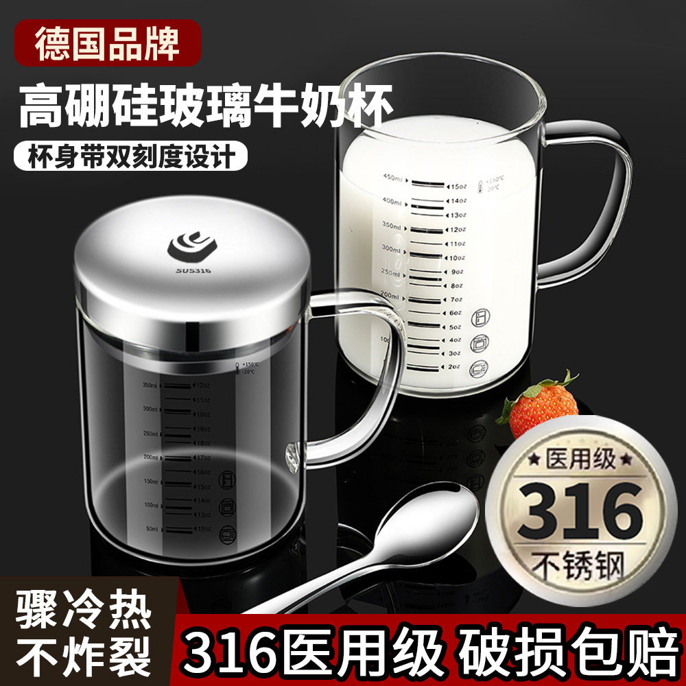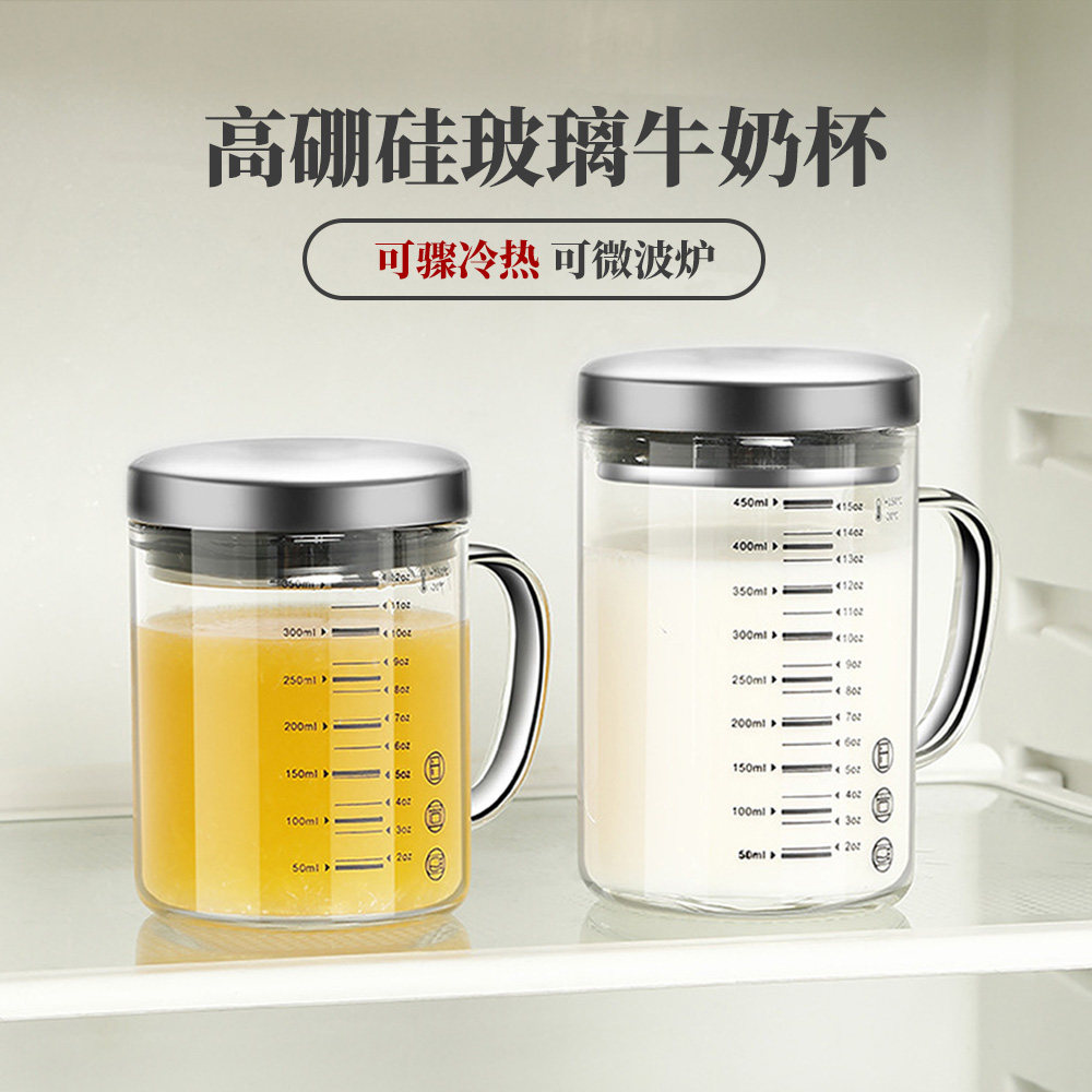 儿童牛奶杯刻度微波炉可加热耐高温食品级玻璃杯喝水杯子带盖水杯