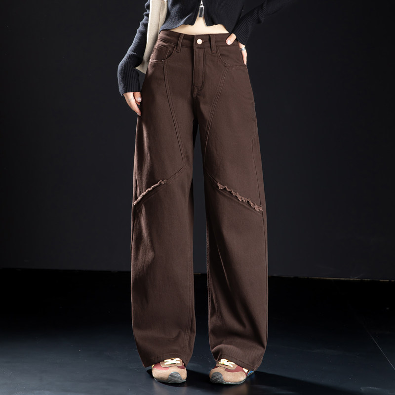 咖啡色弯刀裤加绒牛仔裤女2025新款冬季哈伦裤宽松休闲窄版镰刀裤