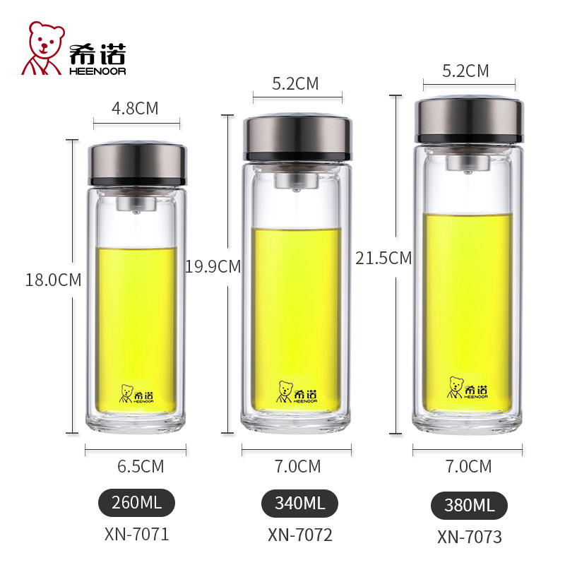希诺双层玻璃水杯子隔热商务办公男女车载便携泡茶7071 7072 7073