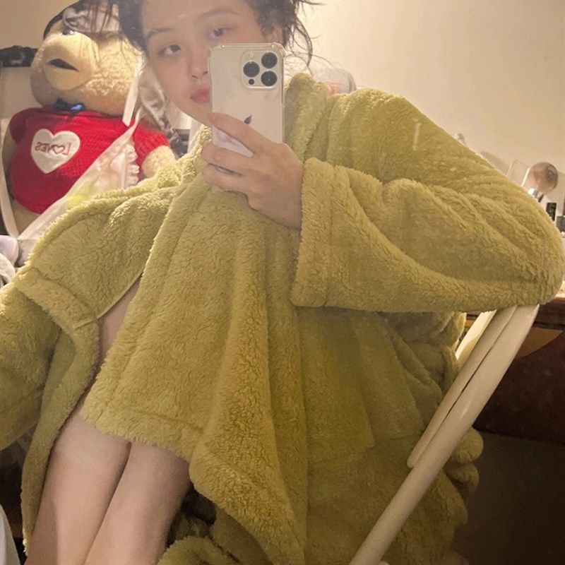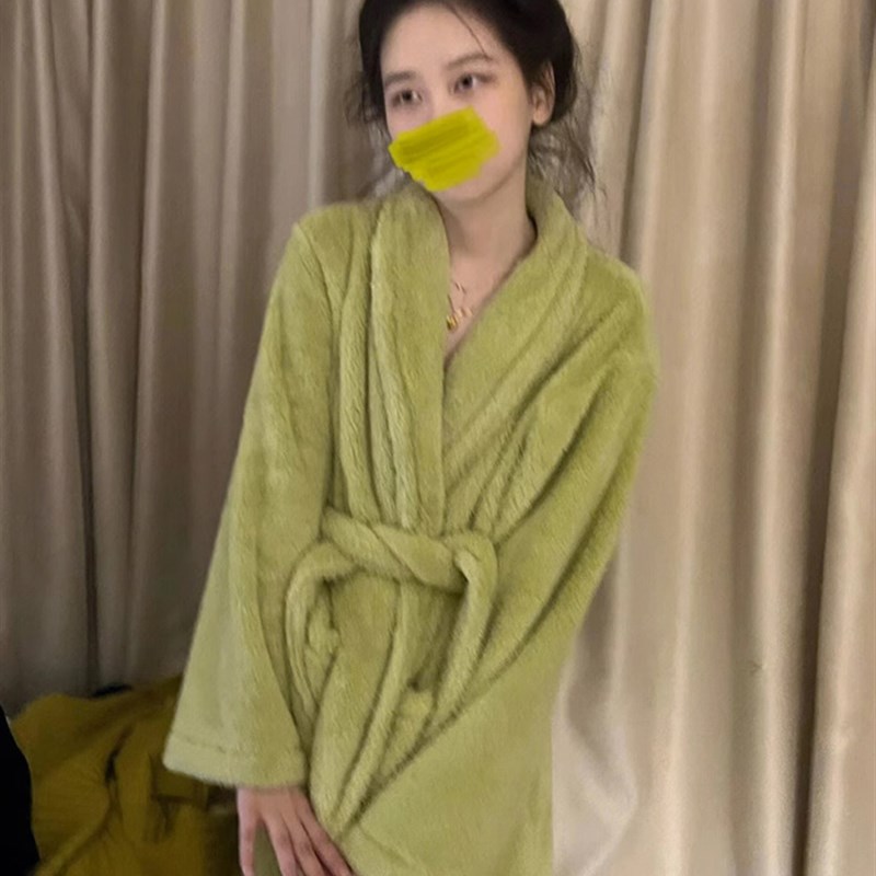 中长款浴袍珊瑚绒长袖女士浴衣加绒加厚秋冬新款睡袍大码睡衣春秋