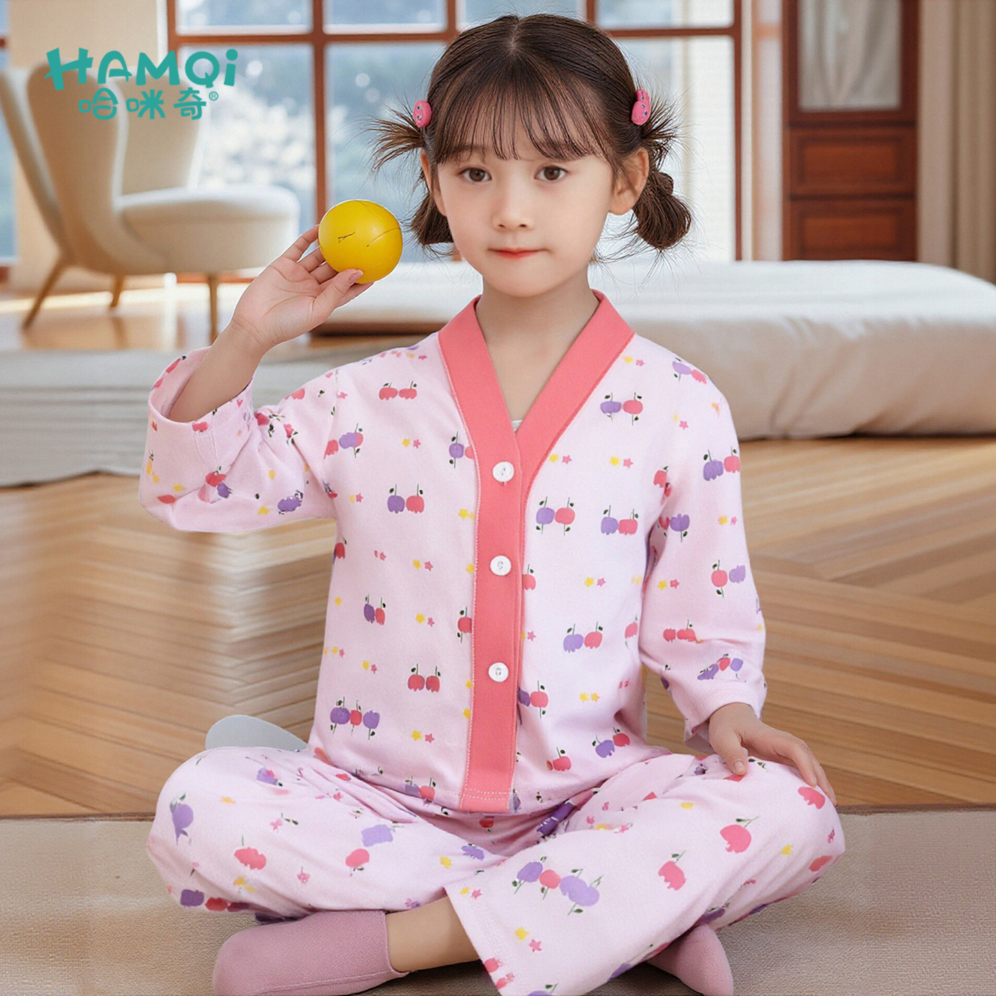 女童开衫家居服套装春秋季纯棉印花小儿童内衣裤宝宝长袖睡衣外穿