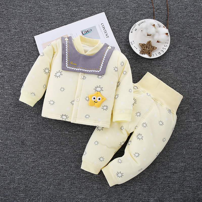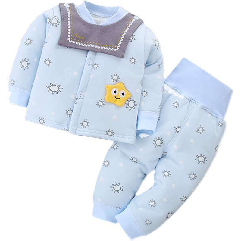 婴儿衣服套装纯棉春秋冬新生儿夹棉加厚保暖棉衣婴幼儿宝宝两件套