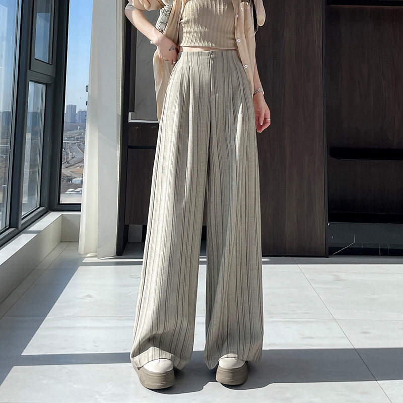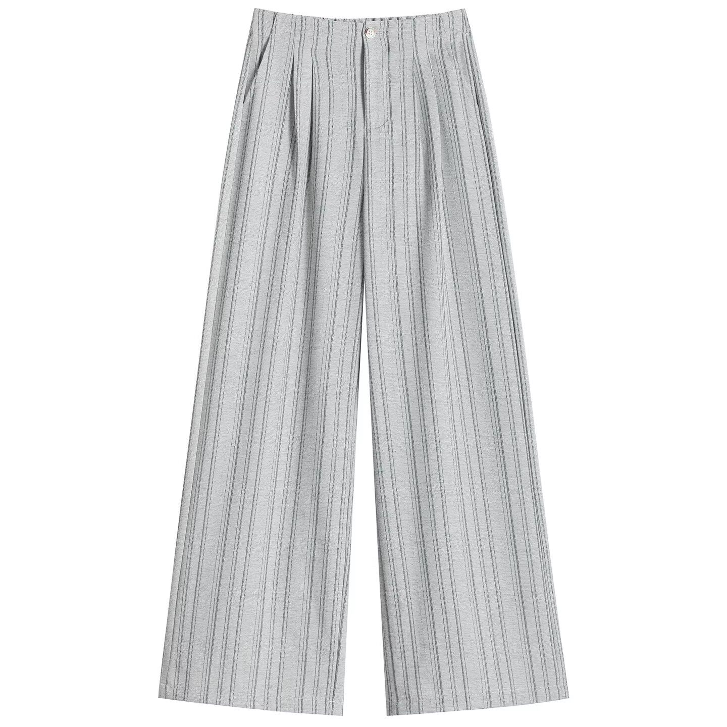 浅灰色条纹西装阔腿裤女春夏季2026新款高级感宽松显瘦休闲直筒裤