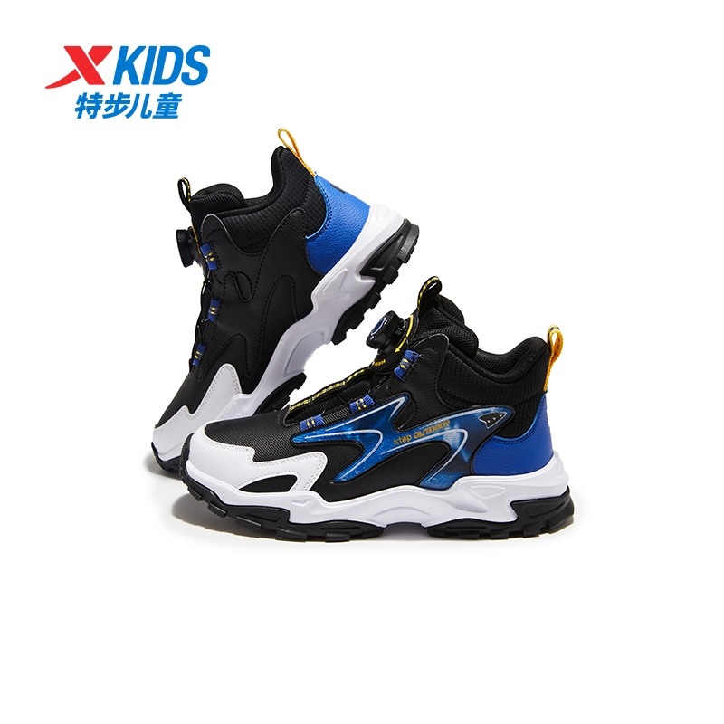 特步童鞋秋季新款中大童防滑鞋子儿童休闲鞋男童革面旋转扣运动鞋