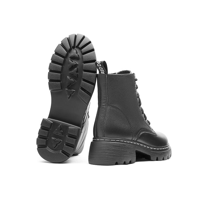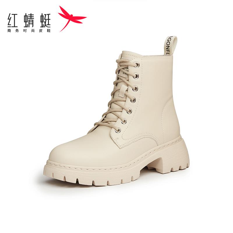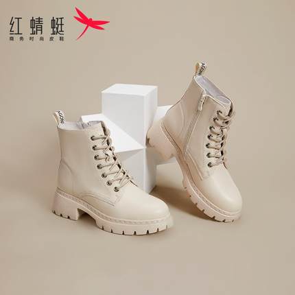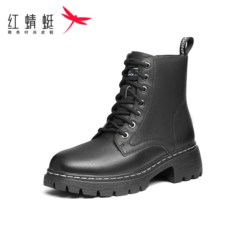 REDDRAGONFLY/红蜻蜓粗跟真皮马丁靴女英伦时尚系带短靴WTC30046