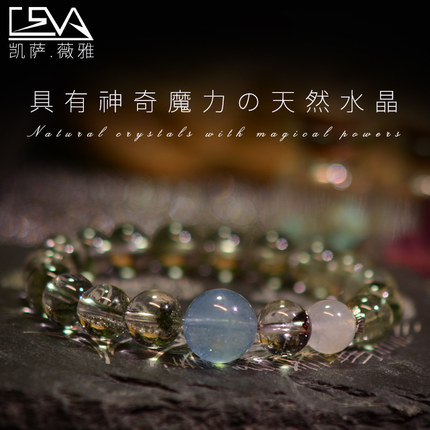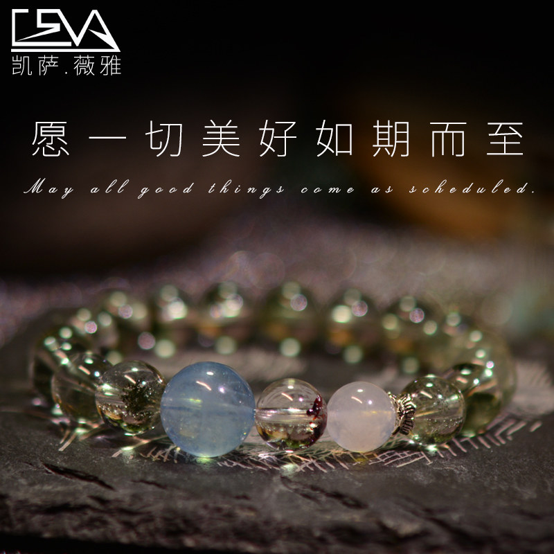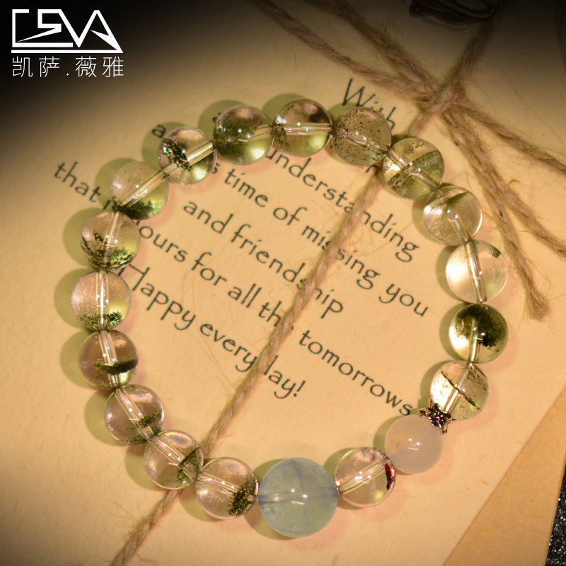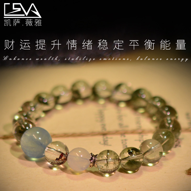 凯萨薇雅原创天然绿幽灵手链海蓝宝石月光石超七手串男女节日礼物