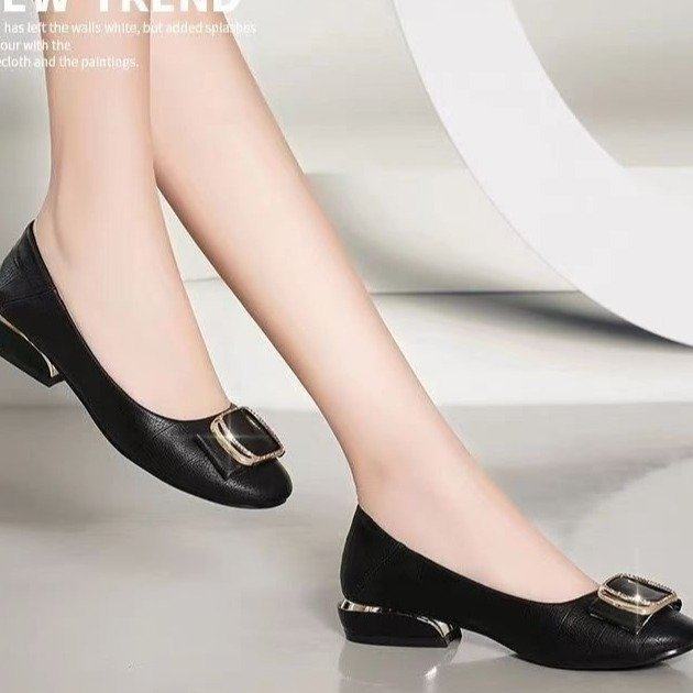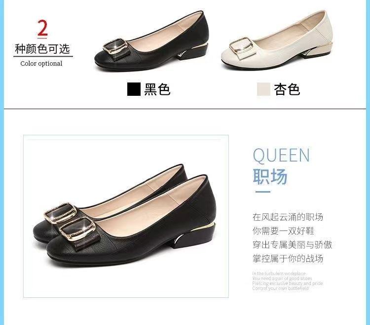 品牌断码清仓大东妞公主真皮低跟单鞋女中跟新款春秋粗跟浅口鞋女