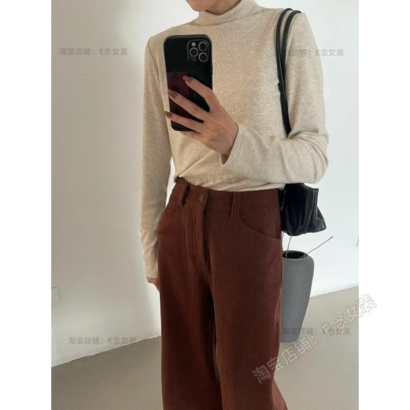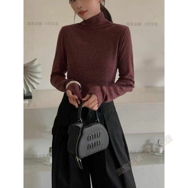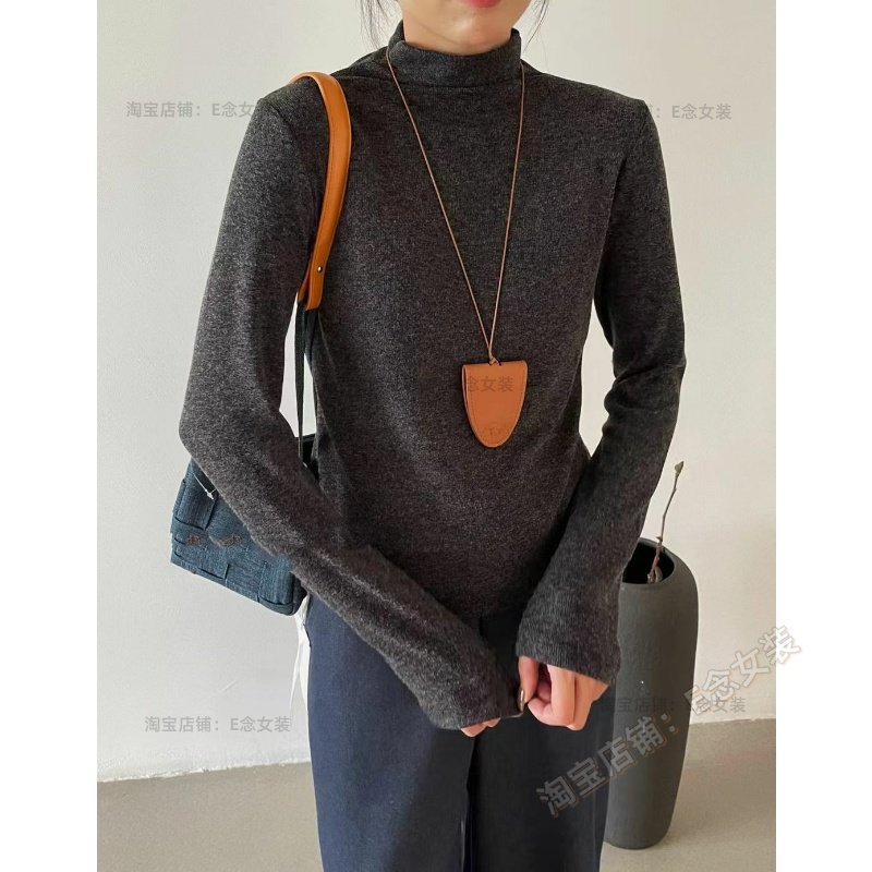 E念8059磨毛加绒半高领打底衫女冬季内搭可外穿气质显瘦长袖t恤女