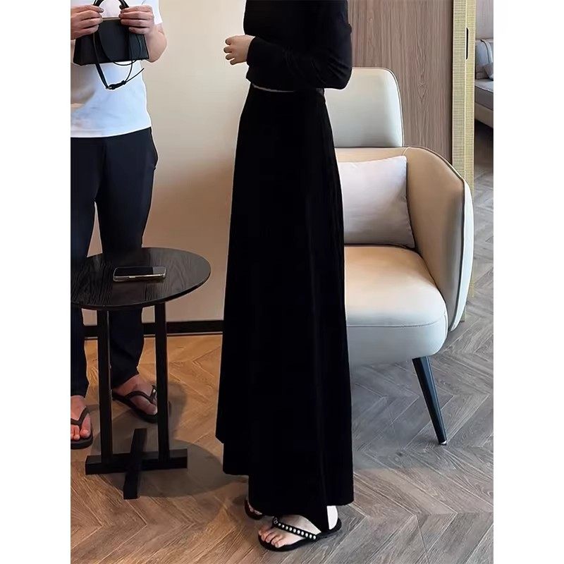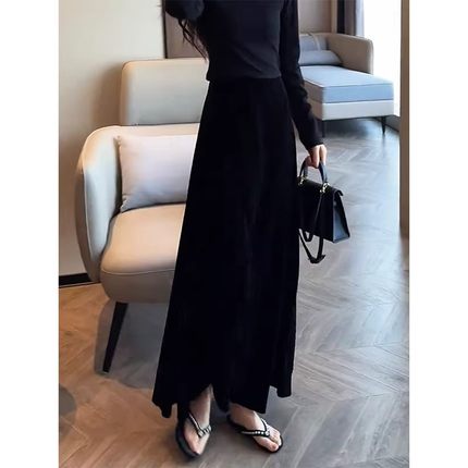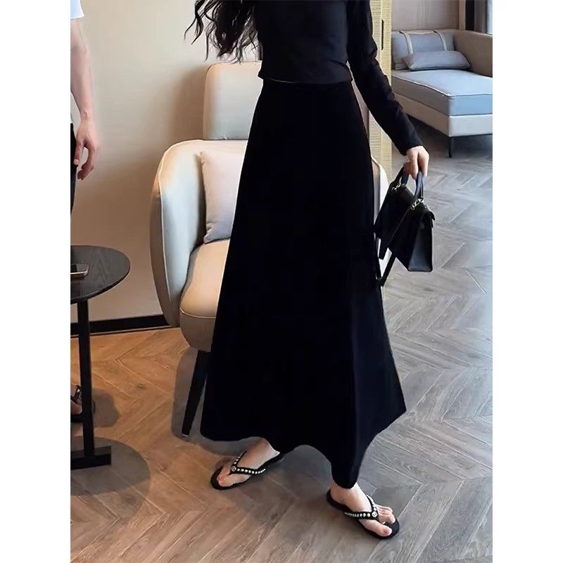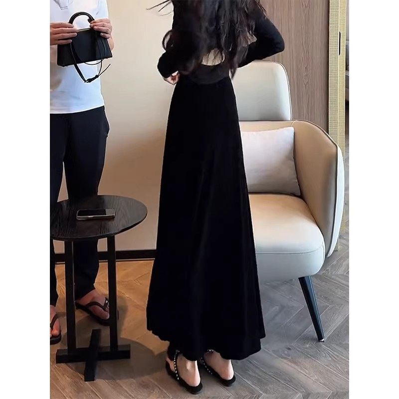 2025年简约风黑色时尚气质垂坠感显瘦A字裙秋季洋气高腰半身裙女
