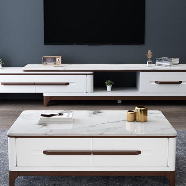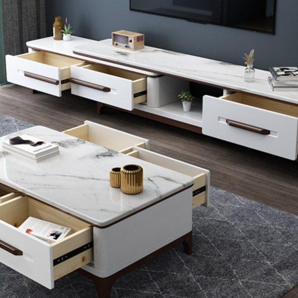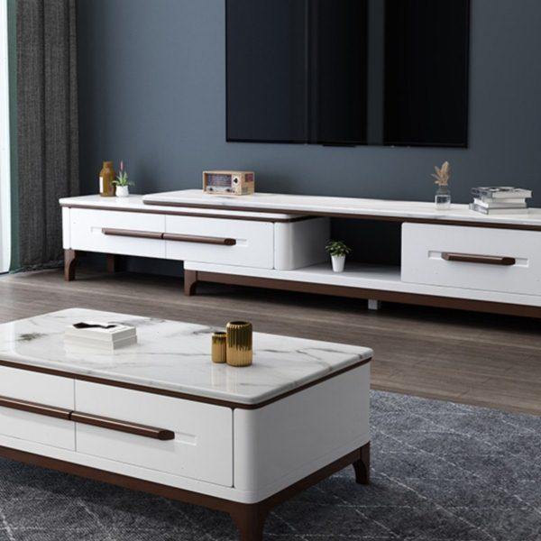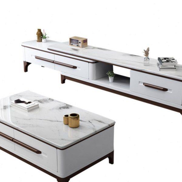 大理石北欧客厅现代简约可伸缩组装1.2米岩板茶几电视柜组合家具