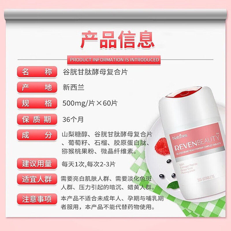 新西兰进口奈氏力斯谷胱甘肽酵母粉复合片葡萄籽胶原蛋白官方正品