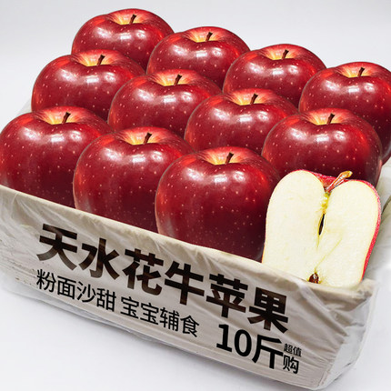 甘肃天水花牛苹果10斤新鲜水果整箱包邮应当季红蛇粉面丑当季平果
