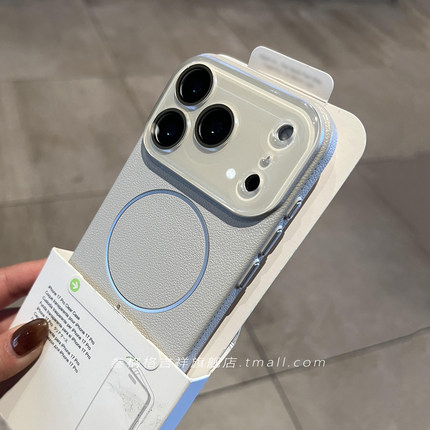 官网同款无线充细圈磁吸荔枝纹水晶镜头全包适用苹果17promax手机壳iPhone16/15plus浮雕防滑14/13/12金属薄+