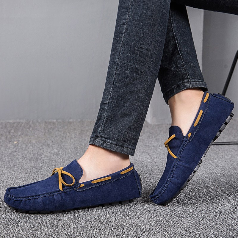 磨砂豆豆鞋男大码一脚蹬男鞋蓝色潮流英伦青年男士休闲懒人鞋