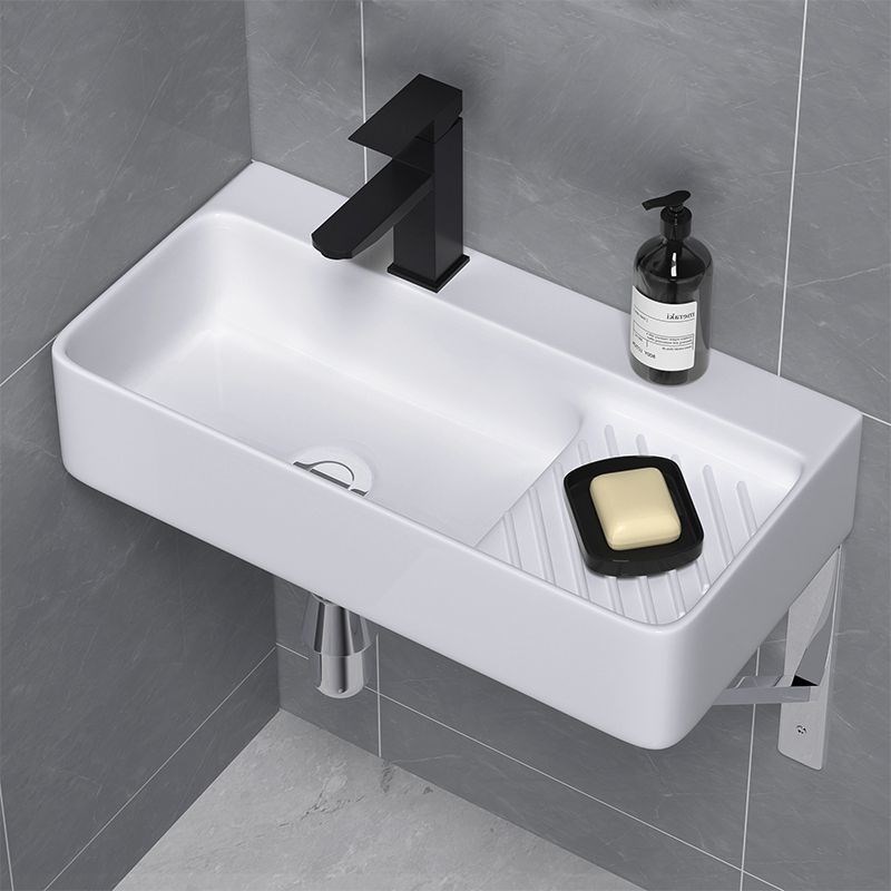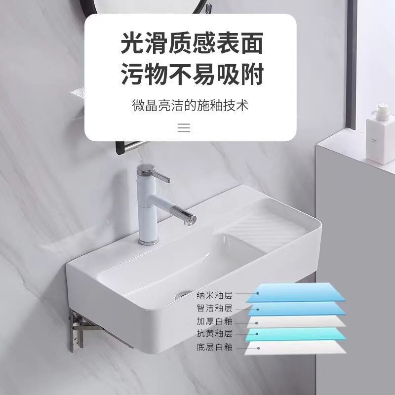 小户型挂墙式洗手盆卫生间带搓衣板窄边加长80陶瓷挂盆简易洗脸盆