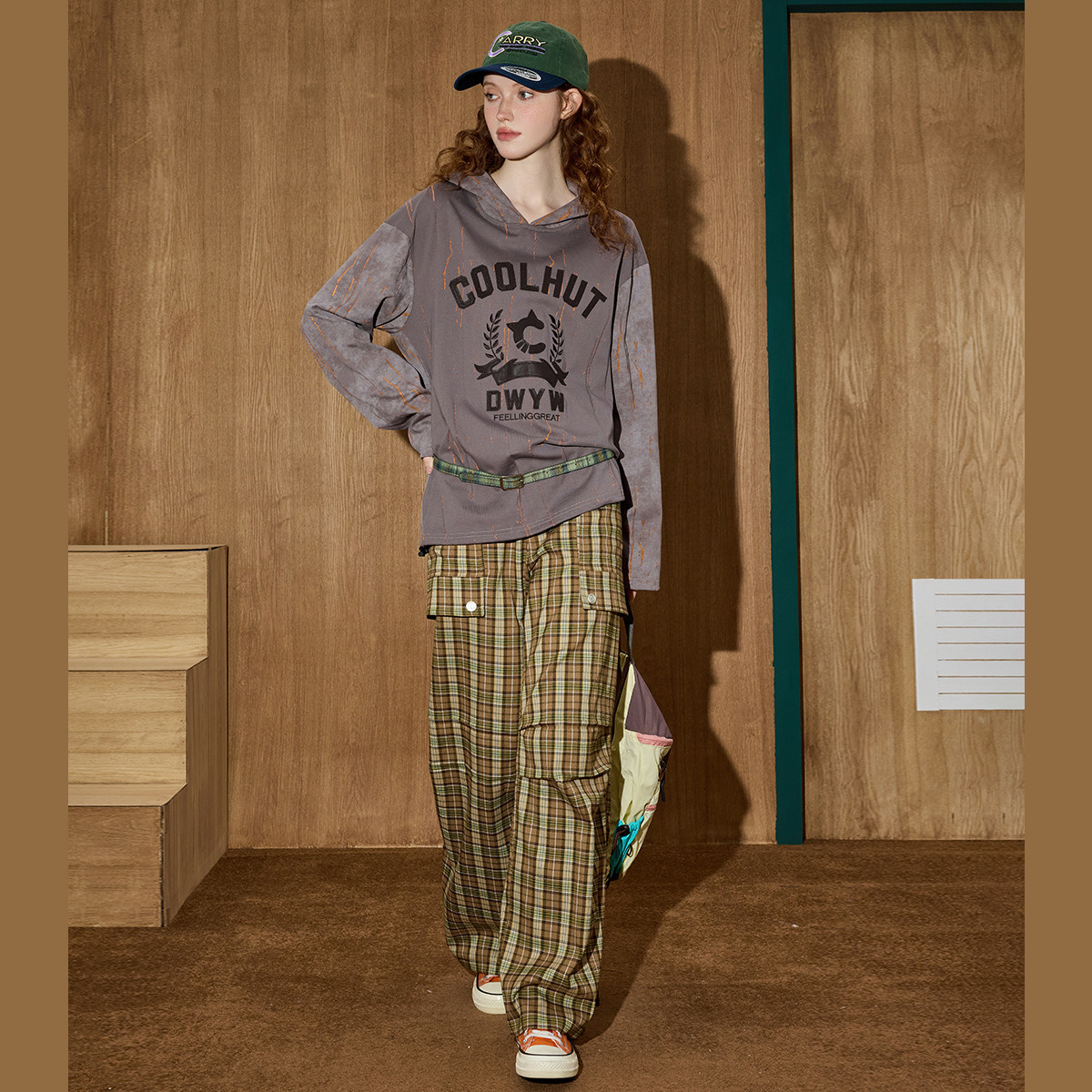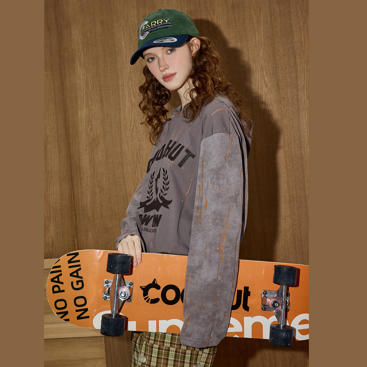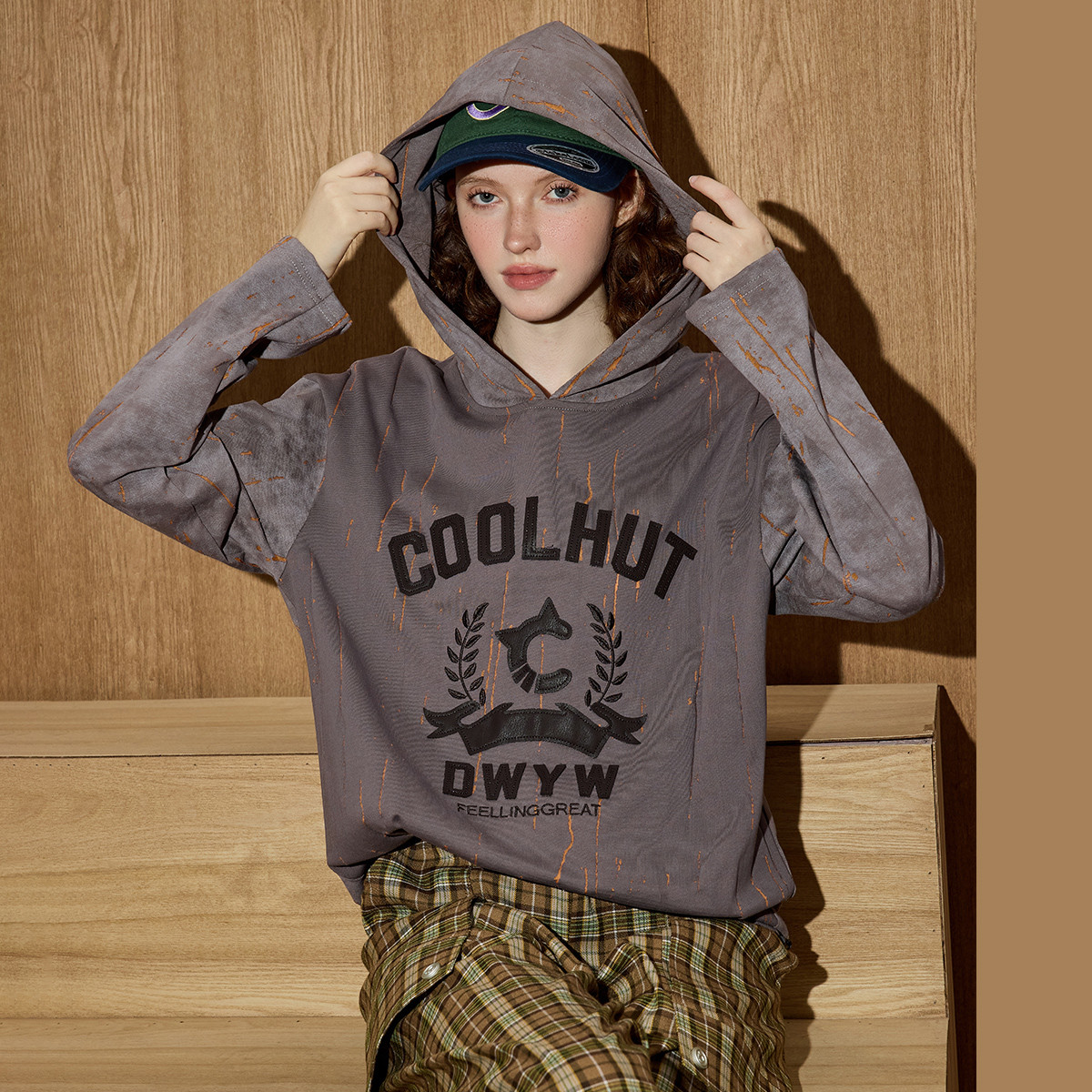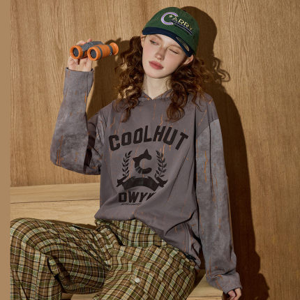 coolhut2025秋冬新款女式美式复古字母印花连帽卫衣街头慵懒风