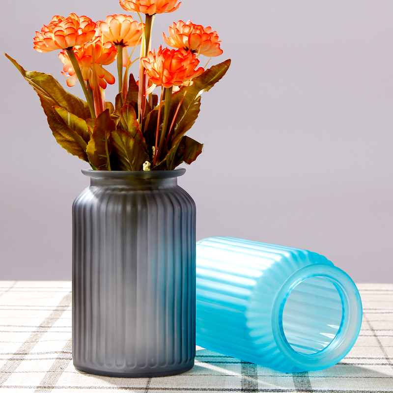 包邮透明彩色竖纹欧式花瓶大小号水培花瓶玻璃插花瓶客厅家居摆件