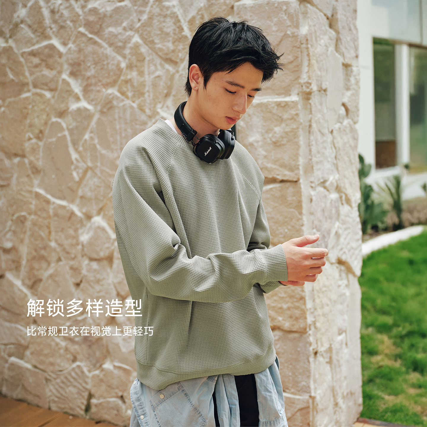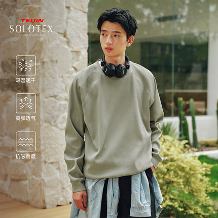RESTICK SOLOTEX云朵华夫格圆领卫衣男速干透气长袖T恤