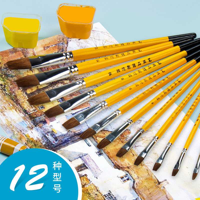 新款直销木质水粉画笔狼毫平头油画丙烯上色笔单支颜料专用勾线美