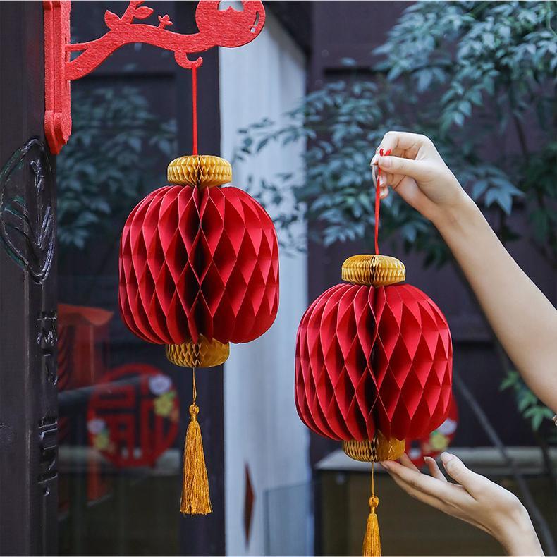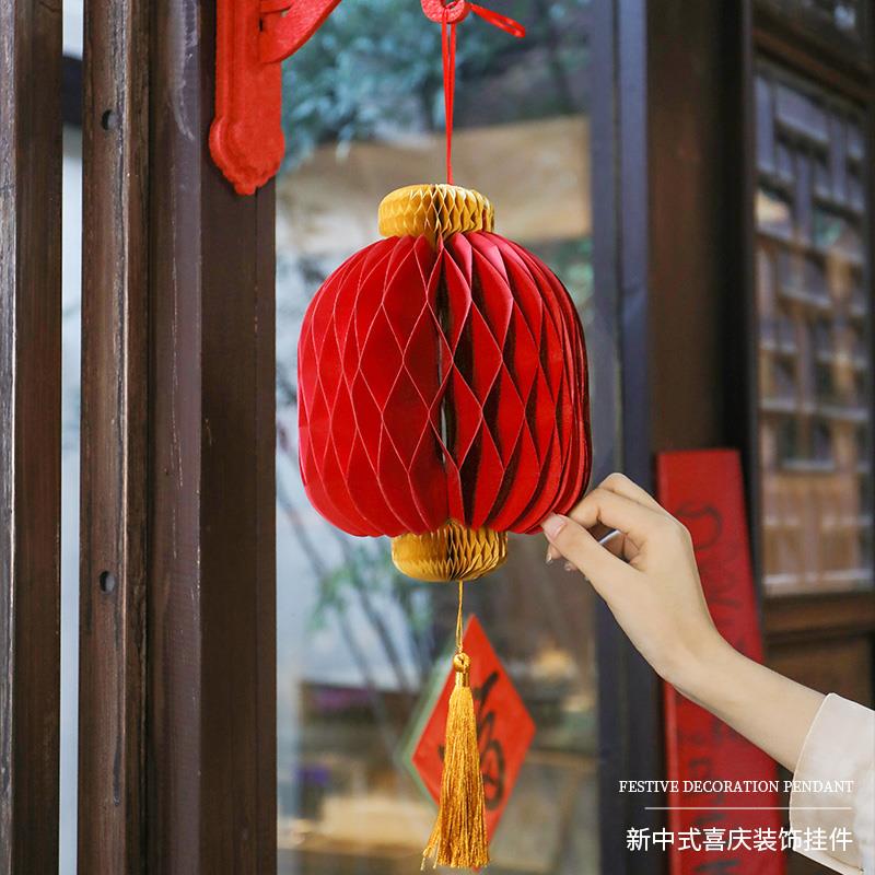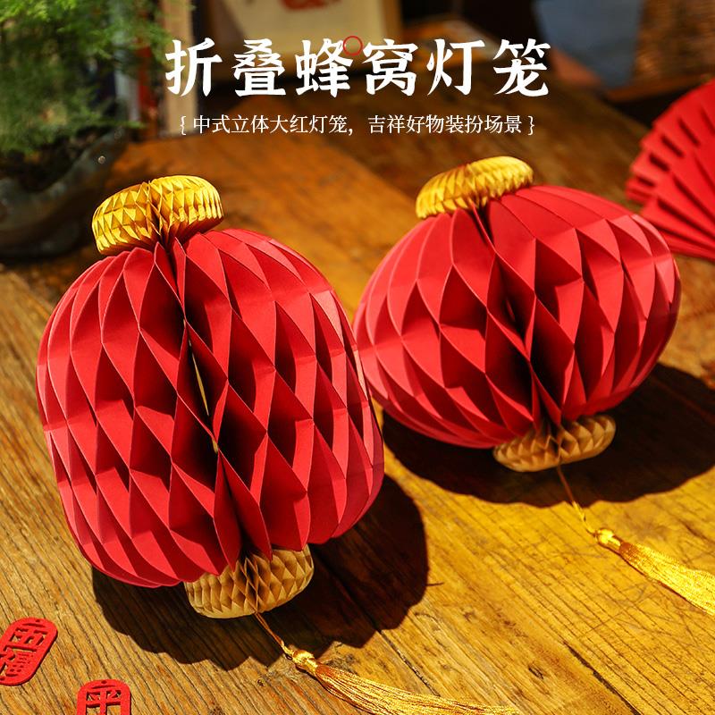 2025蛇年新年装饰挂饰门口蜂窝红灯笼元旦过年喜庆氛围布置用品