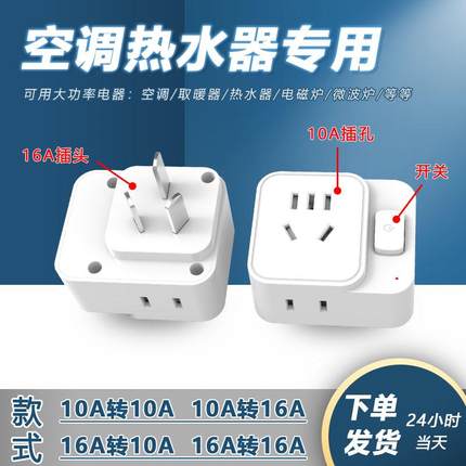 10A转16A大功率插座空调热水器家用带开关多功能三孔转换器插头