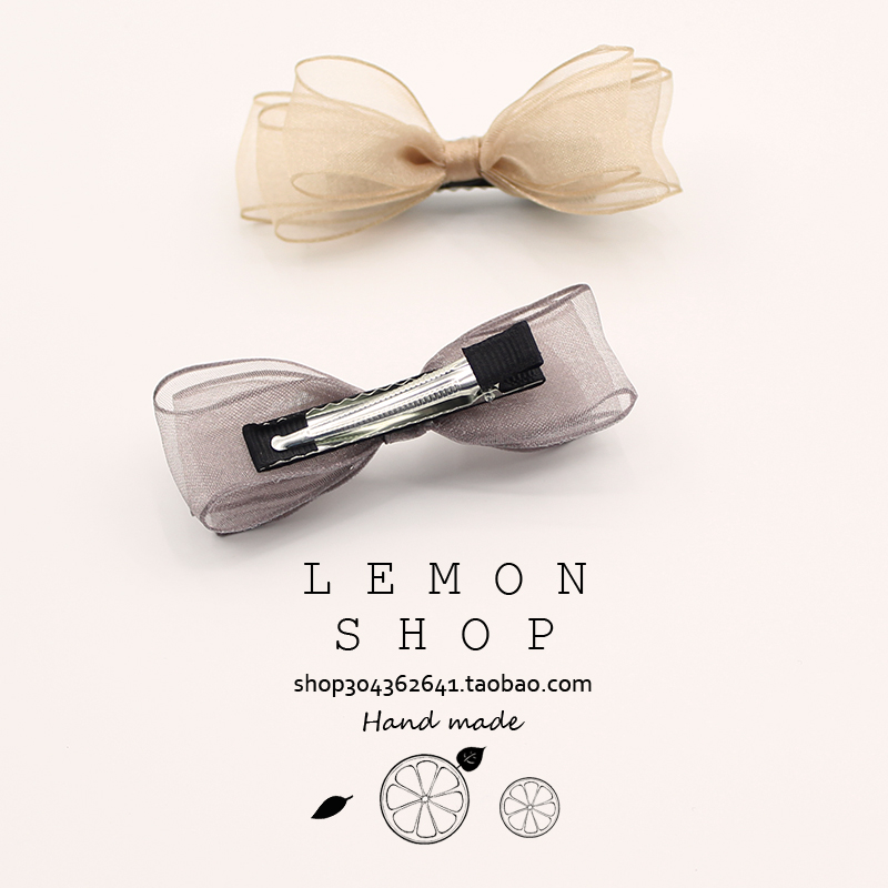 欧根纱蝴蝶结发夹成人鸭嘴夹优雅日韩马尾夹简约边夹顶夹头饰发卡
