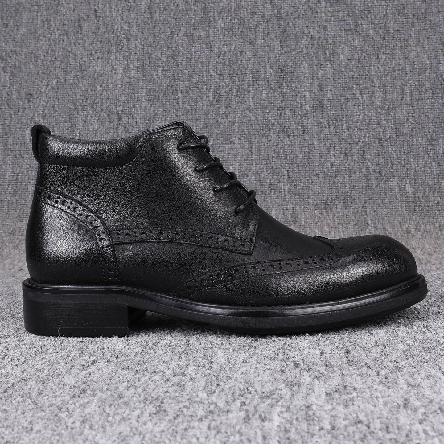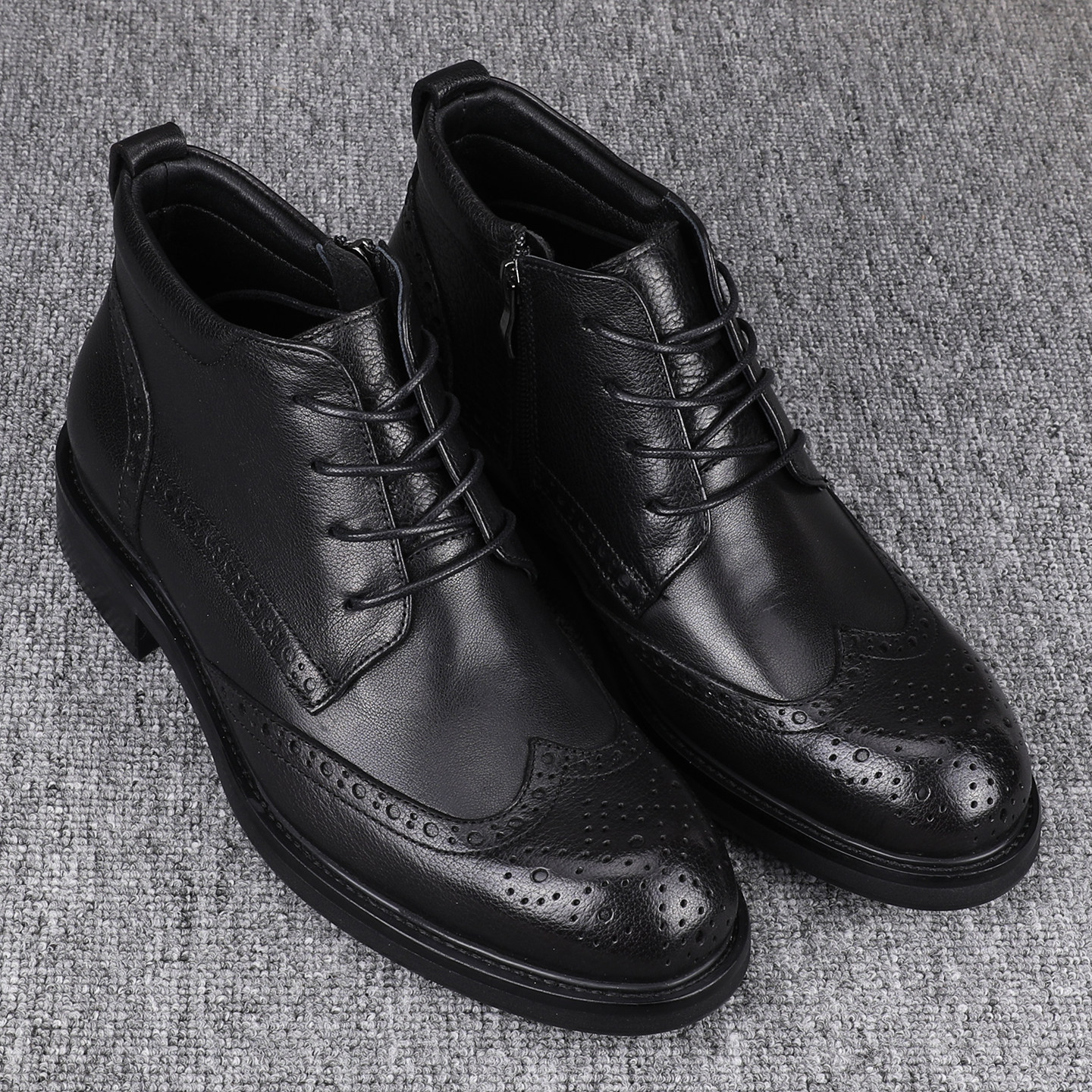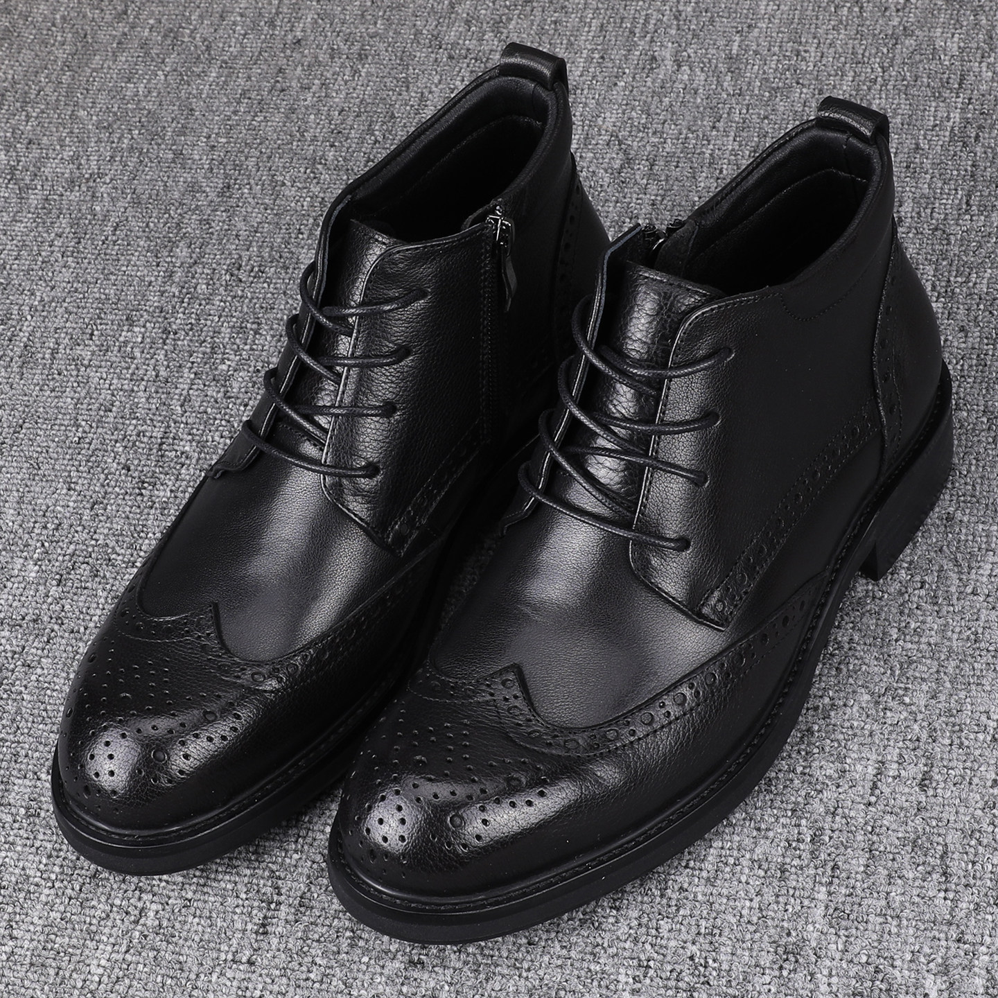 正装商务休闲皮鞋2025新款男士系带高帮时尚布洛克雕花真皮男鞋男