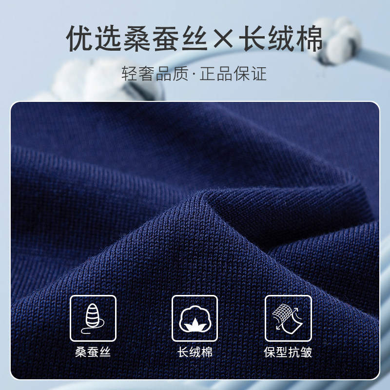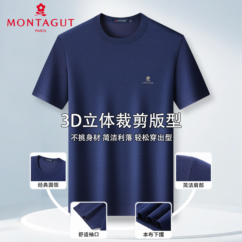 梦特娇桑蚕丝短袖T恤男圆领上衣