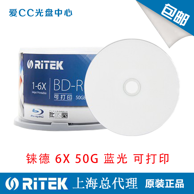 原装正品 铼德蓝光光盘 BD-R DL 6X 8X 50G蓝光盘可打印50片桶装