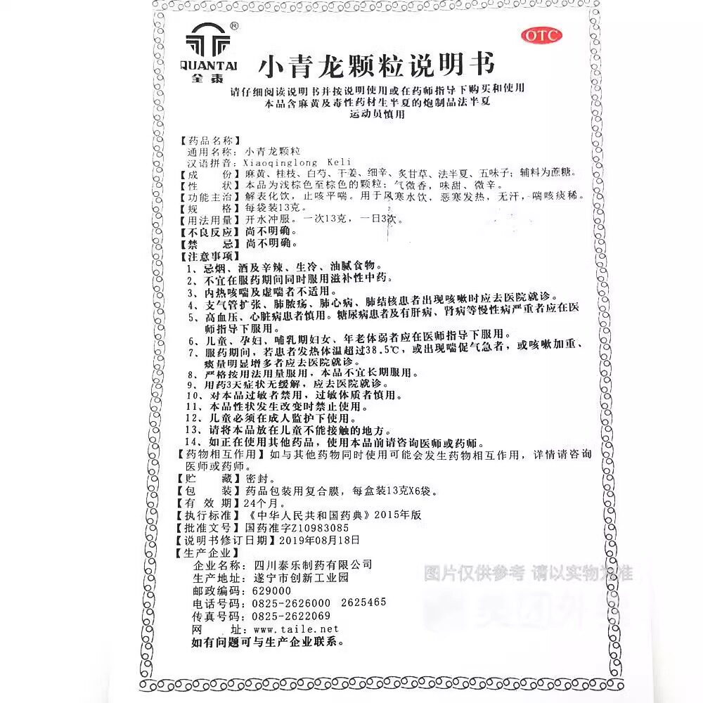 全泰小青龙颗粒13g*6袋风寒水饮恶寒发热止咳平喘OTC正品旗舰店
