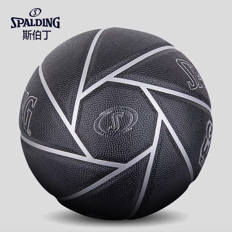 斯伯丁旋风系列篮球10片拼接工艺黑银配色7号PU室内外76-998Y