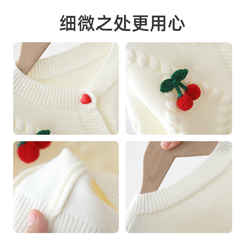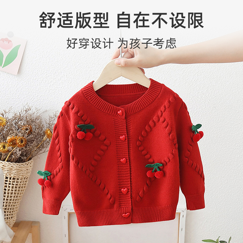 婧麒女童针织开衫秋冬加厚上衣婴儿衣服宝宝红色儿童新年毛衣外套