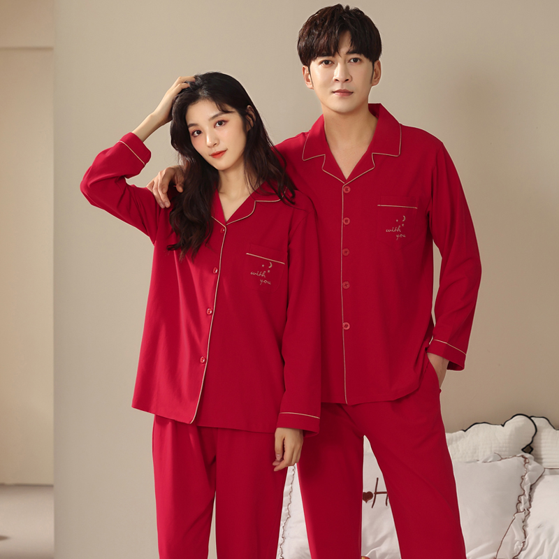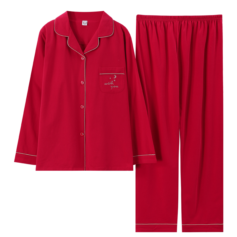 思馨坊情侣睡衣春秋季纯棉长袖男女红色结婚新婚秋冬款家居服套装
