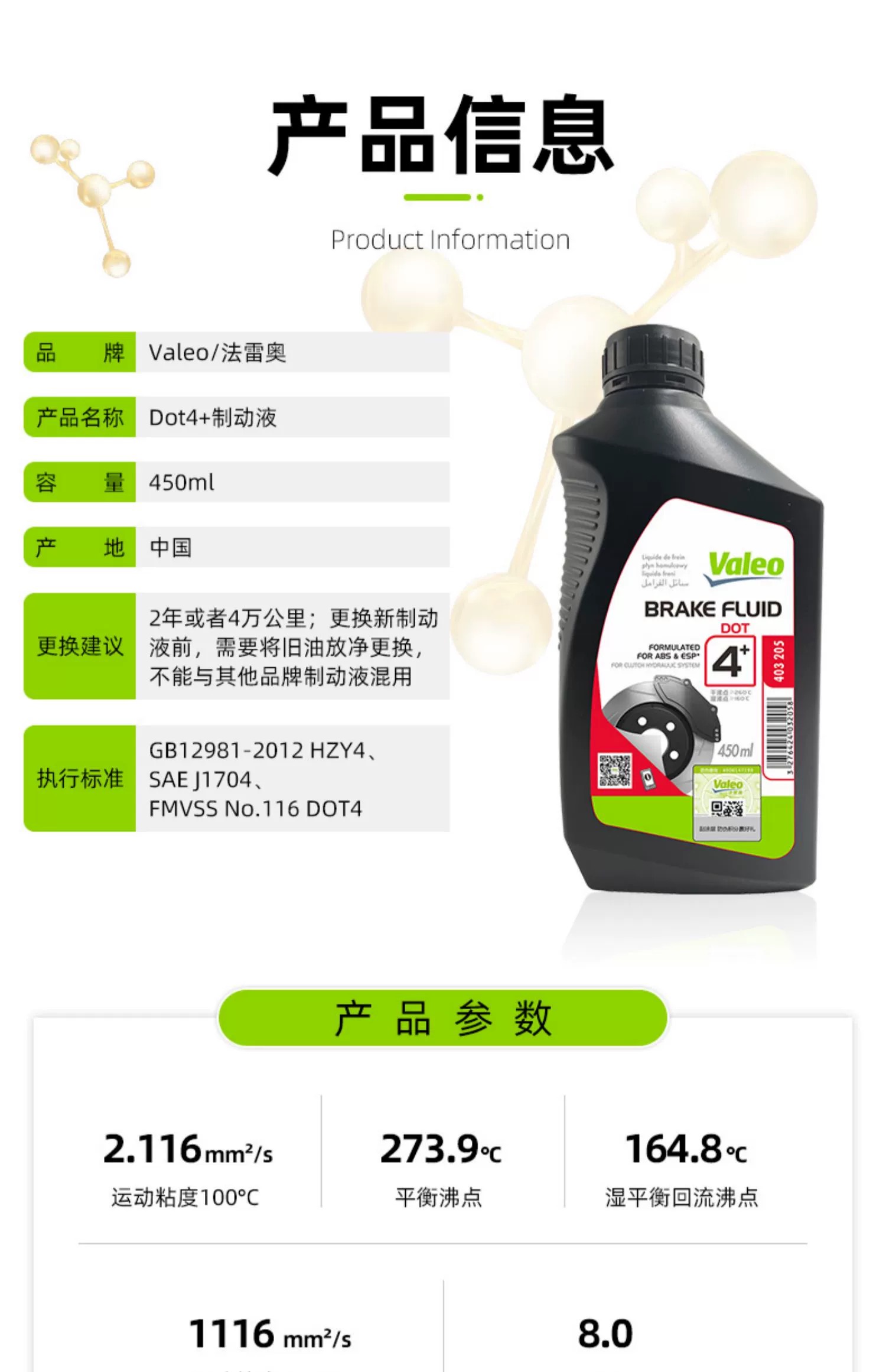 上汽大通V80G10V90G20刹车油全合成进口法雷奥原厂制动液D0T4油液