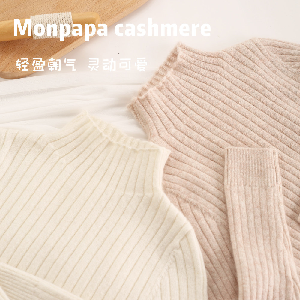 秋冬儿童半高领纯羊绒衫修身女童山羊绒打底衫宝宝中领毛衣白色薄