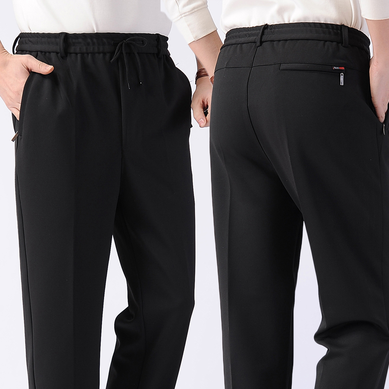 春秋厚款松紧腰直筒休闲裤男 肥佬大码中老人年裤宽松爸爸厚长裤