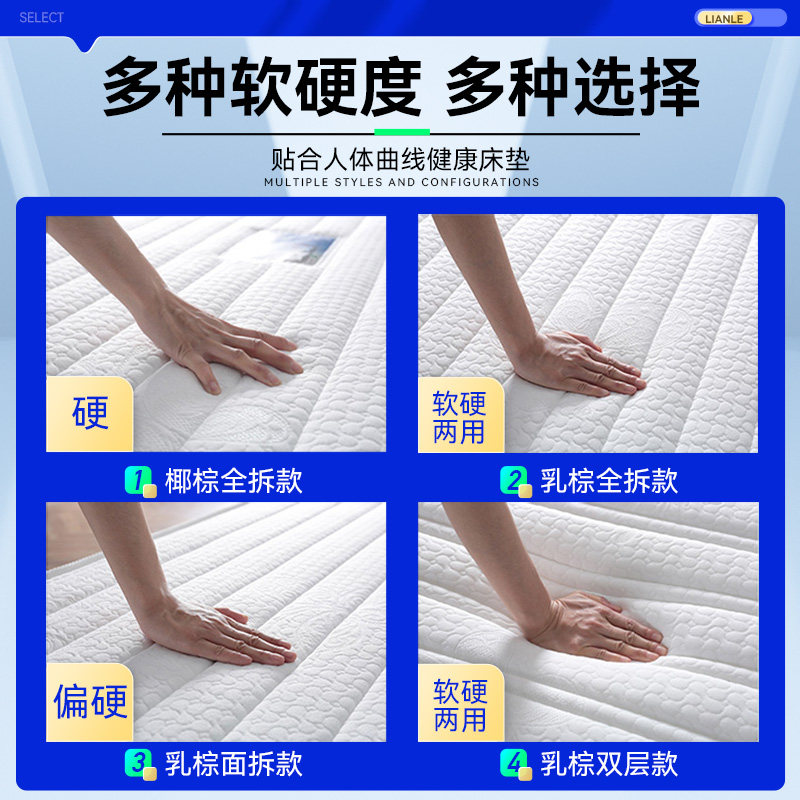 联乐天然椰棕床垫护脊棕垫进口乳胶硬垫老人成人儿童床垫20cm可拆