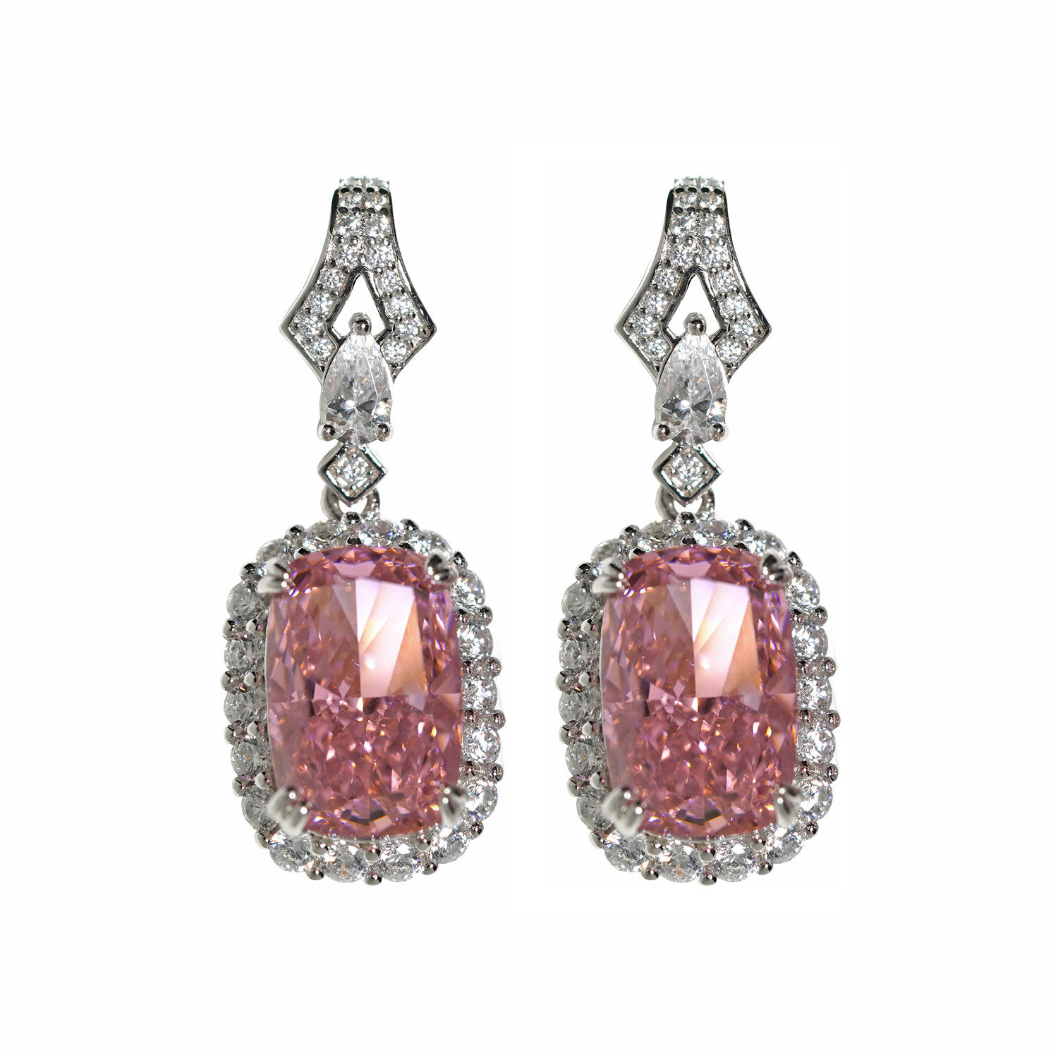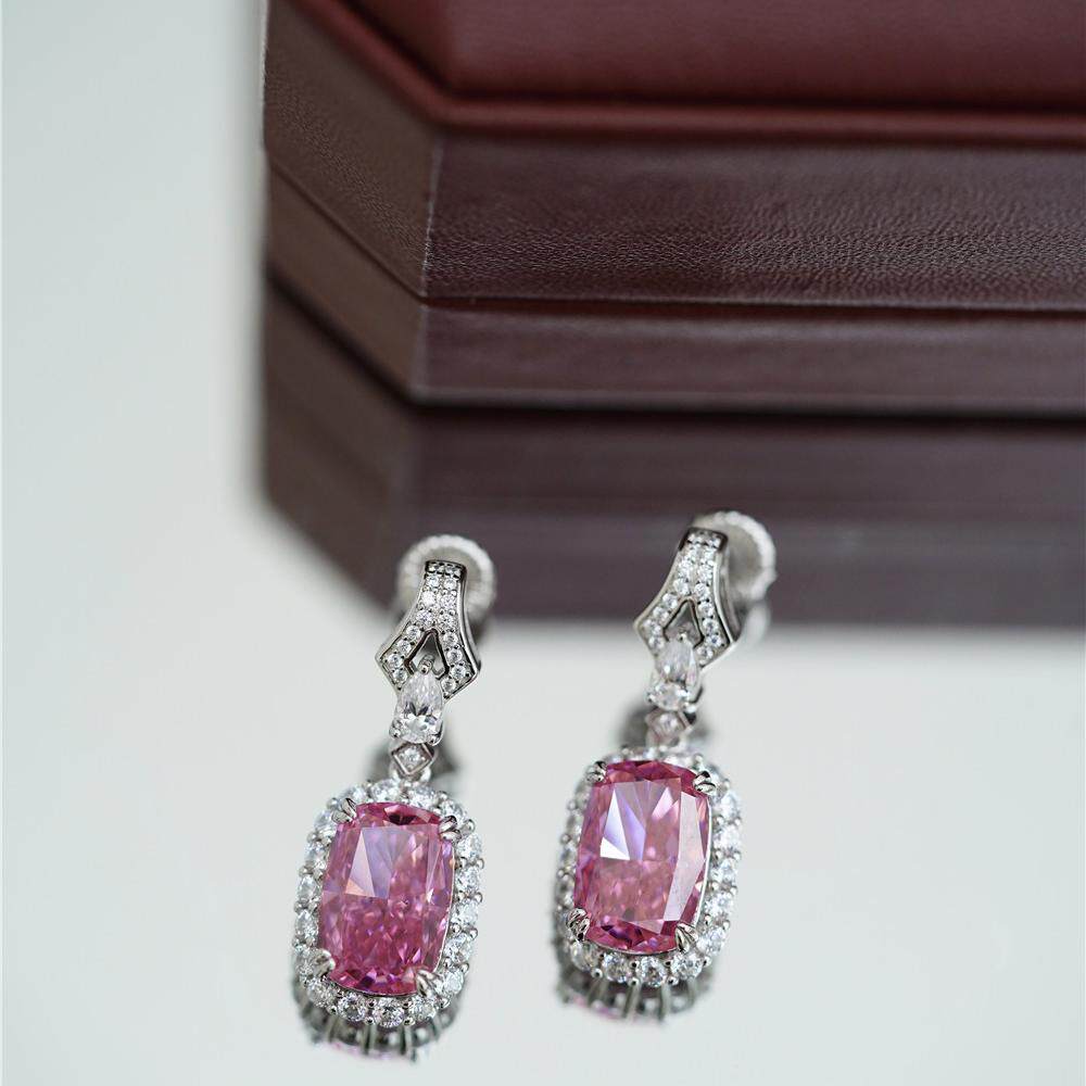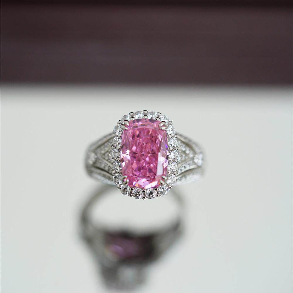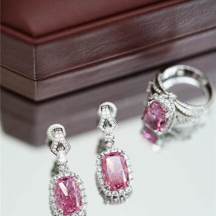 喻棠italks|925银镀金粉色主石摩根石色鸡尾酒戒指吊坠耳坠套装