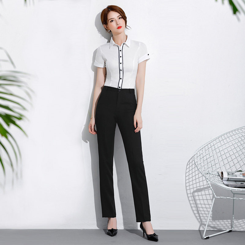 黑色工作裤服务员直筒松紧腰上班职业装高腰正装西装裤女春秋长裤