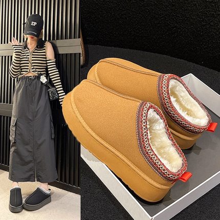 2025秋冬季新款棉鞋花边民族风时尚棉拖鞋百搭保暖鞋女厚底外穿HD