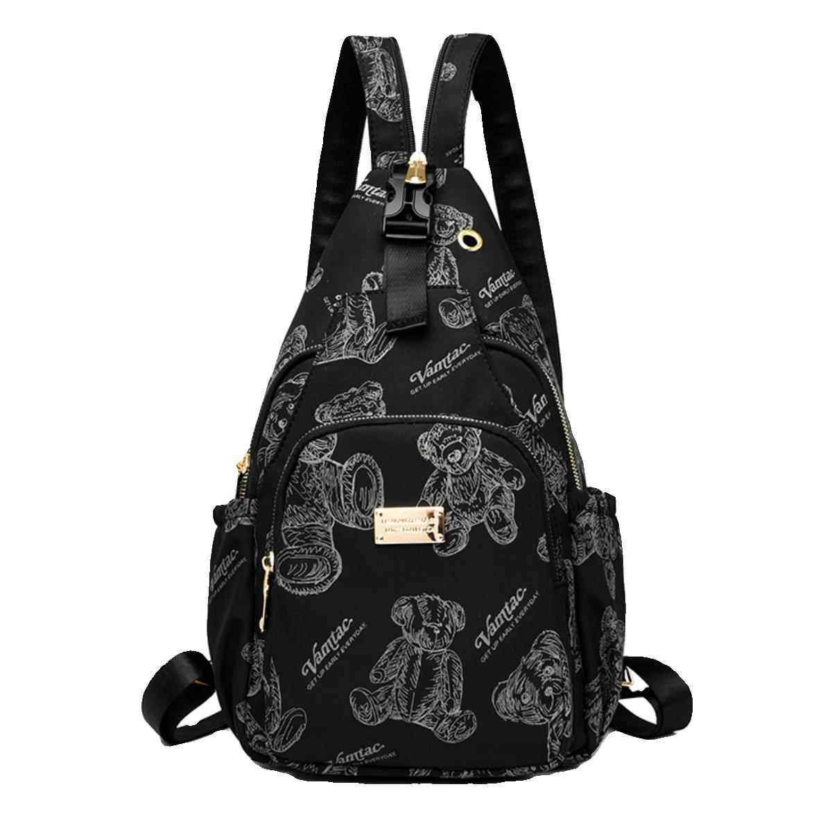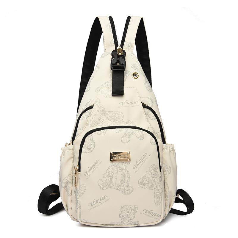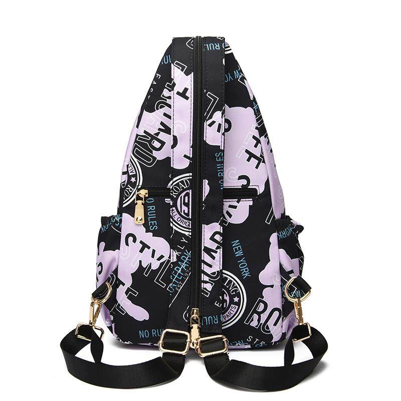 2024新款欧美时尚女士轻便尼龙布印花胸包多功能两用迷你双肩包潮