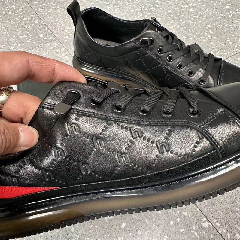 头层牛皮+压花时尚运动休闲板鞋