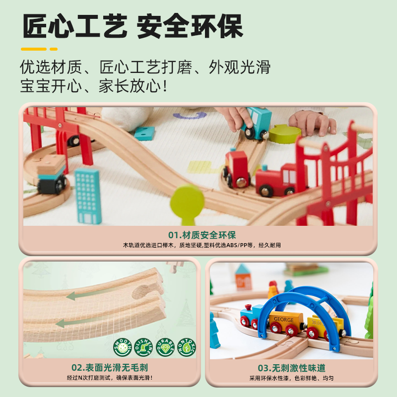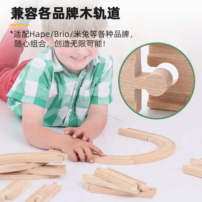 兼容hape火车轨道玩具拓展包配件木质积木儿童小火车电动轨道车木