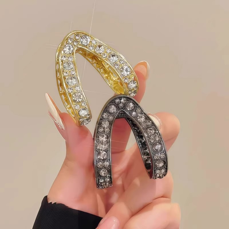 v型抓夹高级感水钻半扎发夹女后脑勺高颅顶头饰高马尾丸子头抓夹