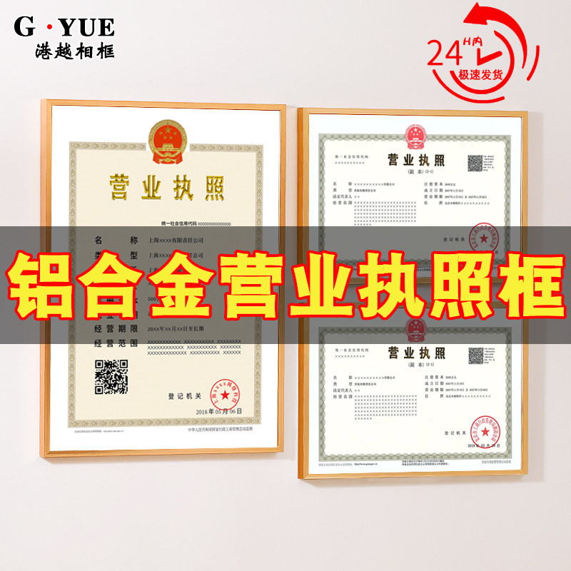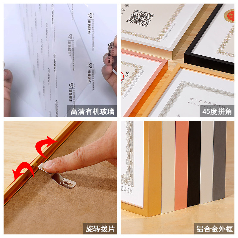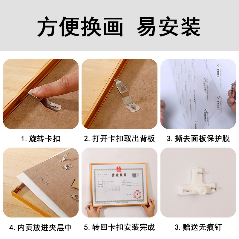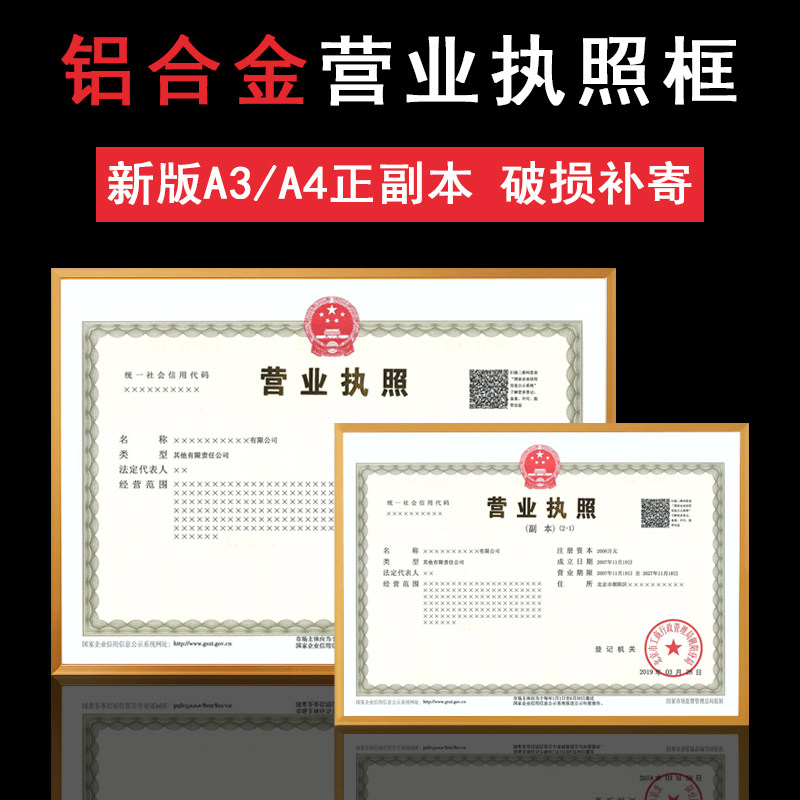 铝合金工商营业执照框架三合一挂墙a4A3正副本卫生许可证展示相框