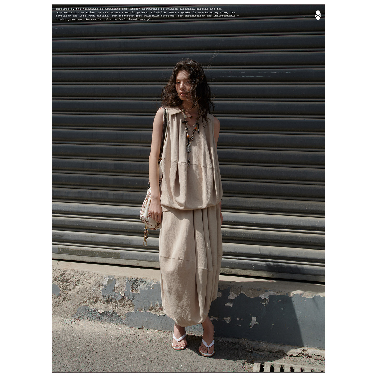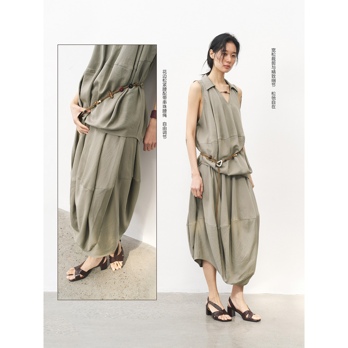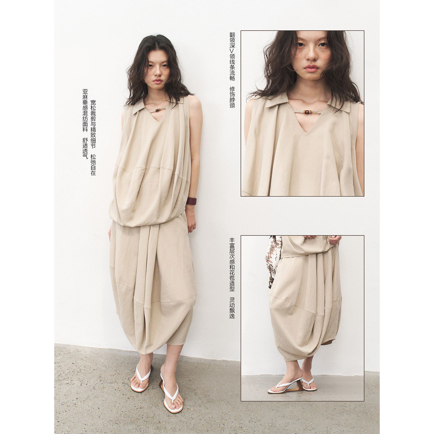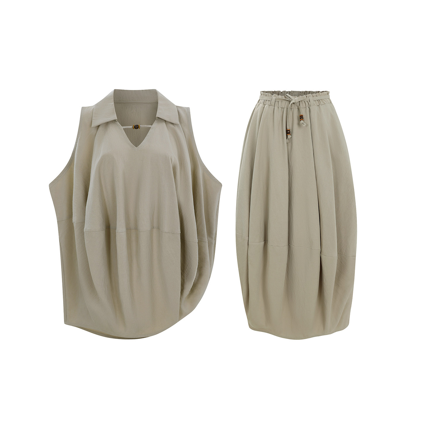 BALIANG「捌樑」翩'Wave'亚麻混纺花苞背心上衣立体茧型半裙套装