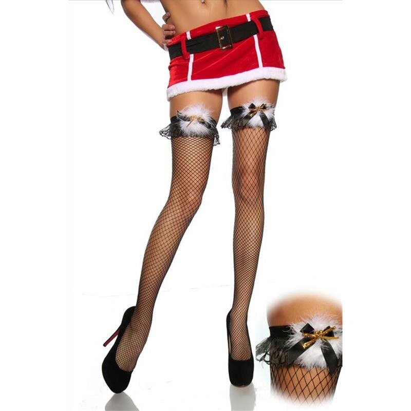 渔网袜子漏洞中长筒大红色性感铃铛羽毛蝴蝶结老人圣诞袜装饰礼品